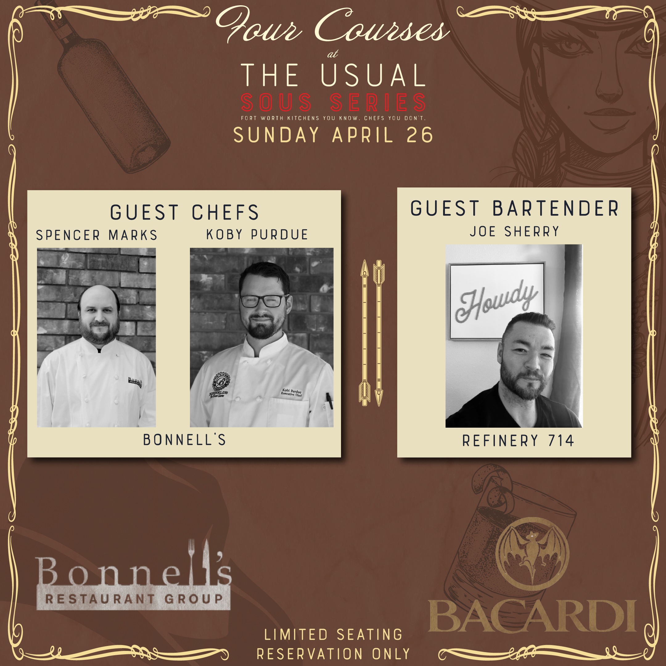 Our Sous Series is back for April with chefs Spencer Marks and Kobi Purdue from Bonnell's Fine Texas Cuisine, and our old pal Joe Sherry from Refinery 714!